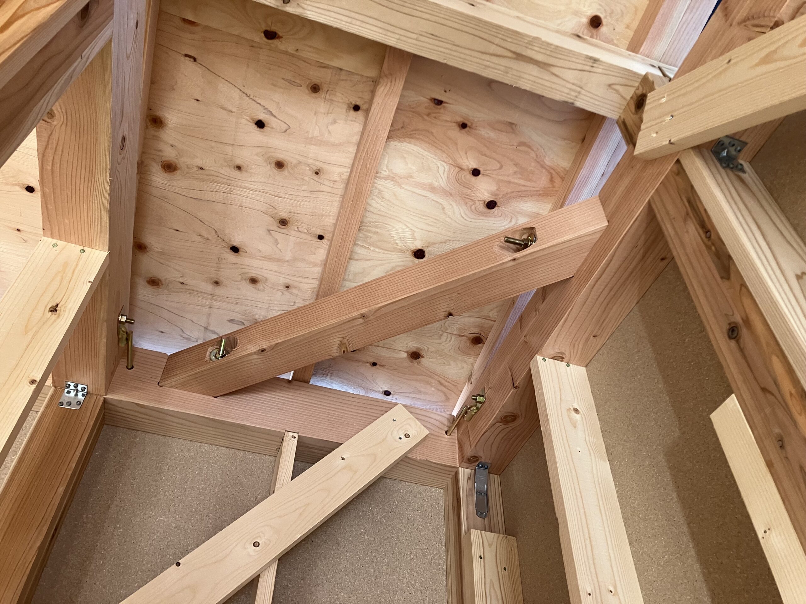 笛吹市 二階建て住宅 木工事 Publish : 2025.12.15 Category : こんにちは 進行中の新築物件、木工事中です。 社内による中間検査、金物検査もおこなっております。 View All History View